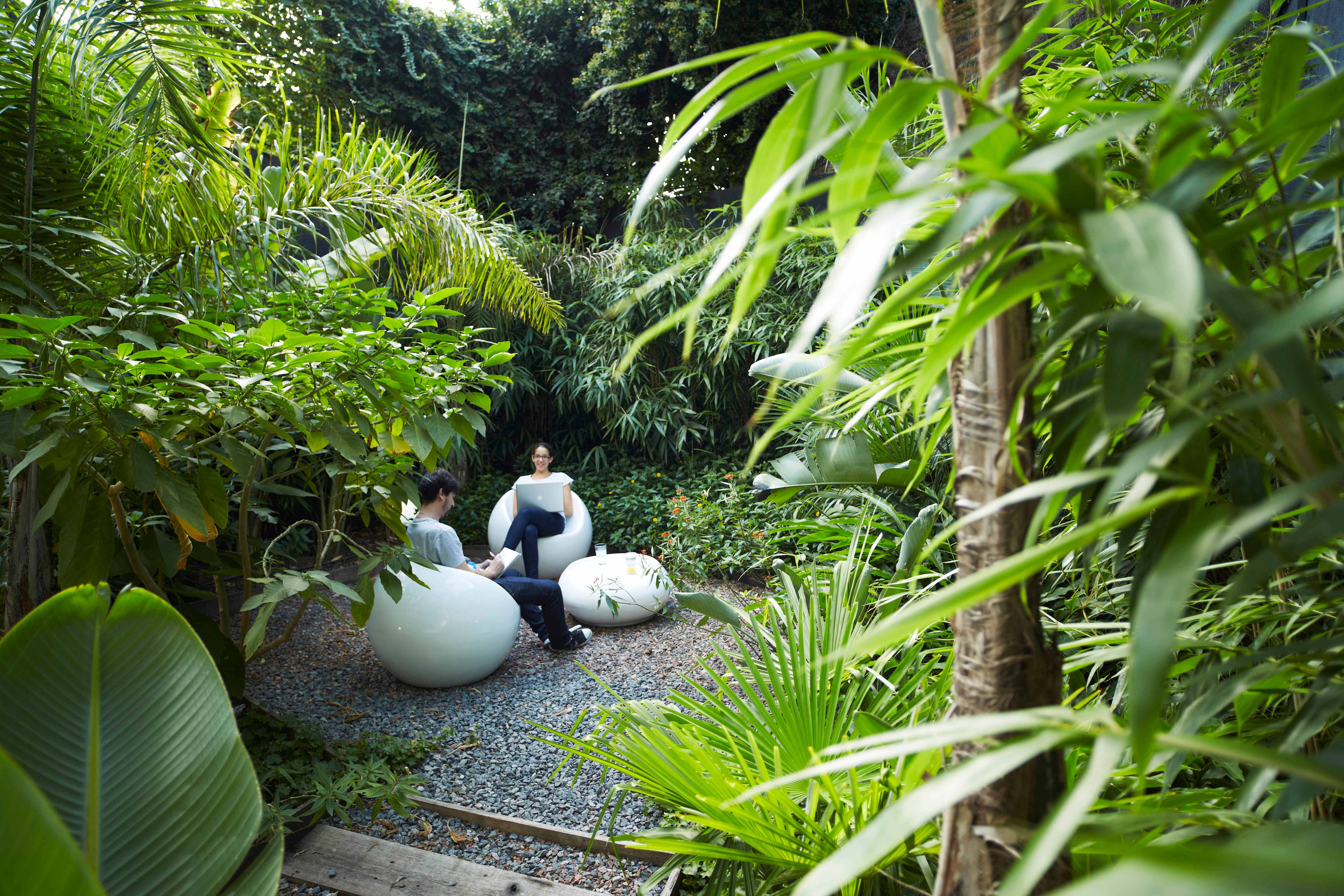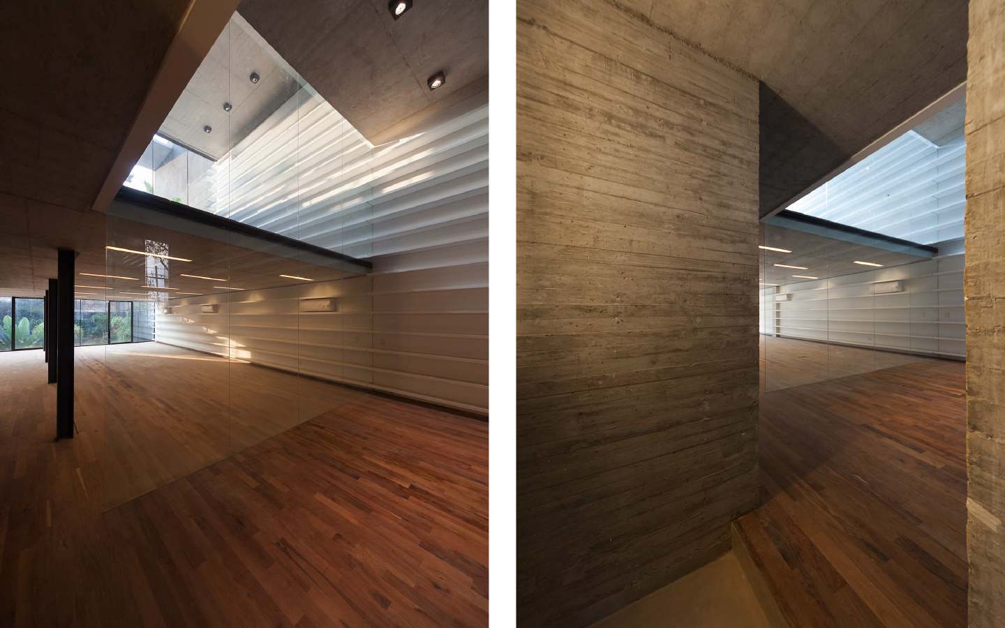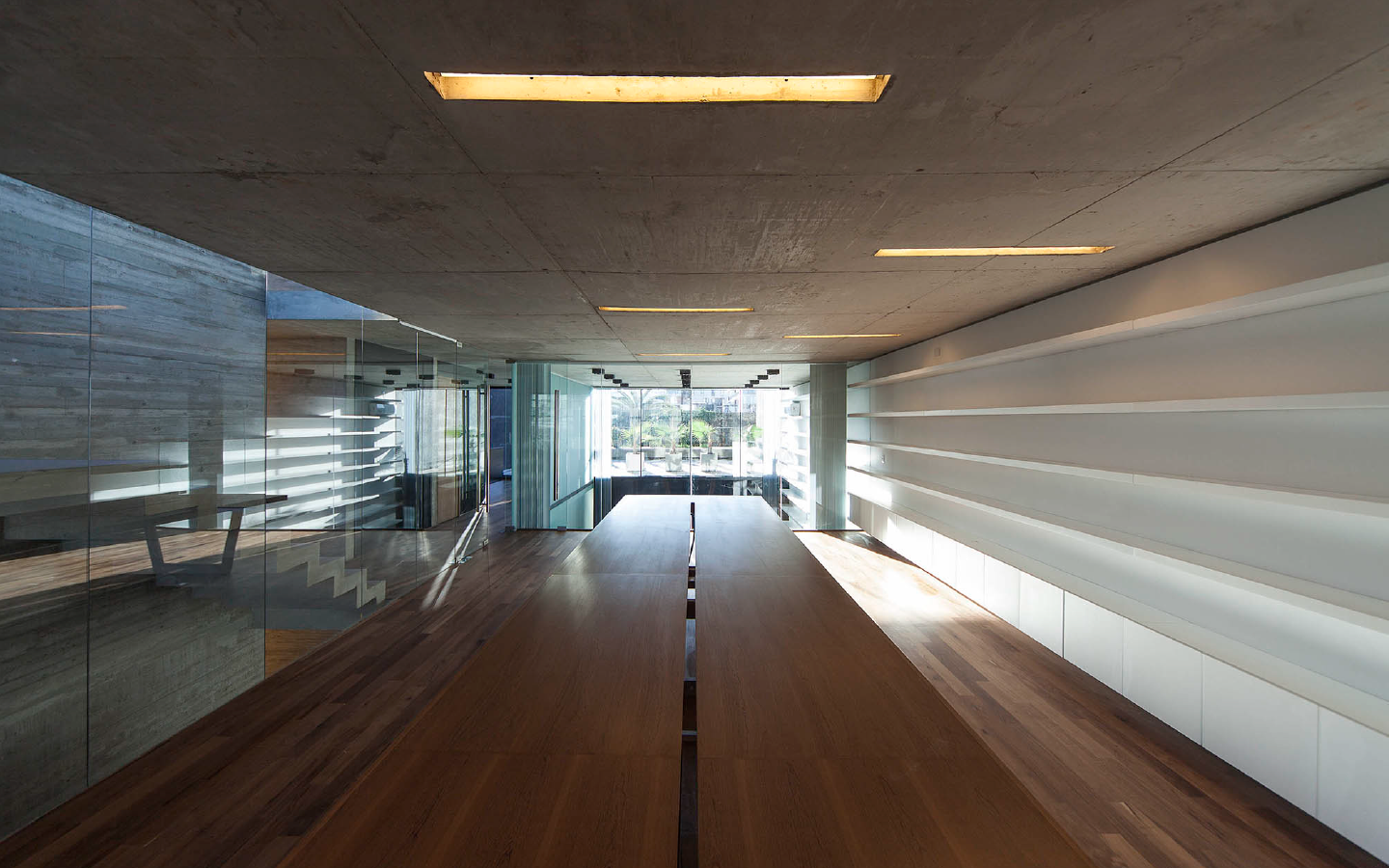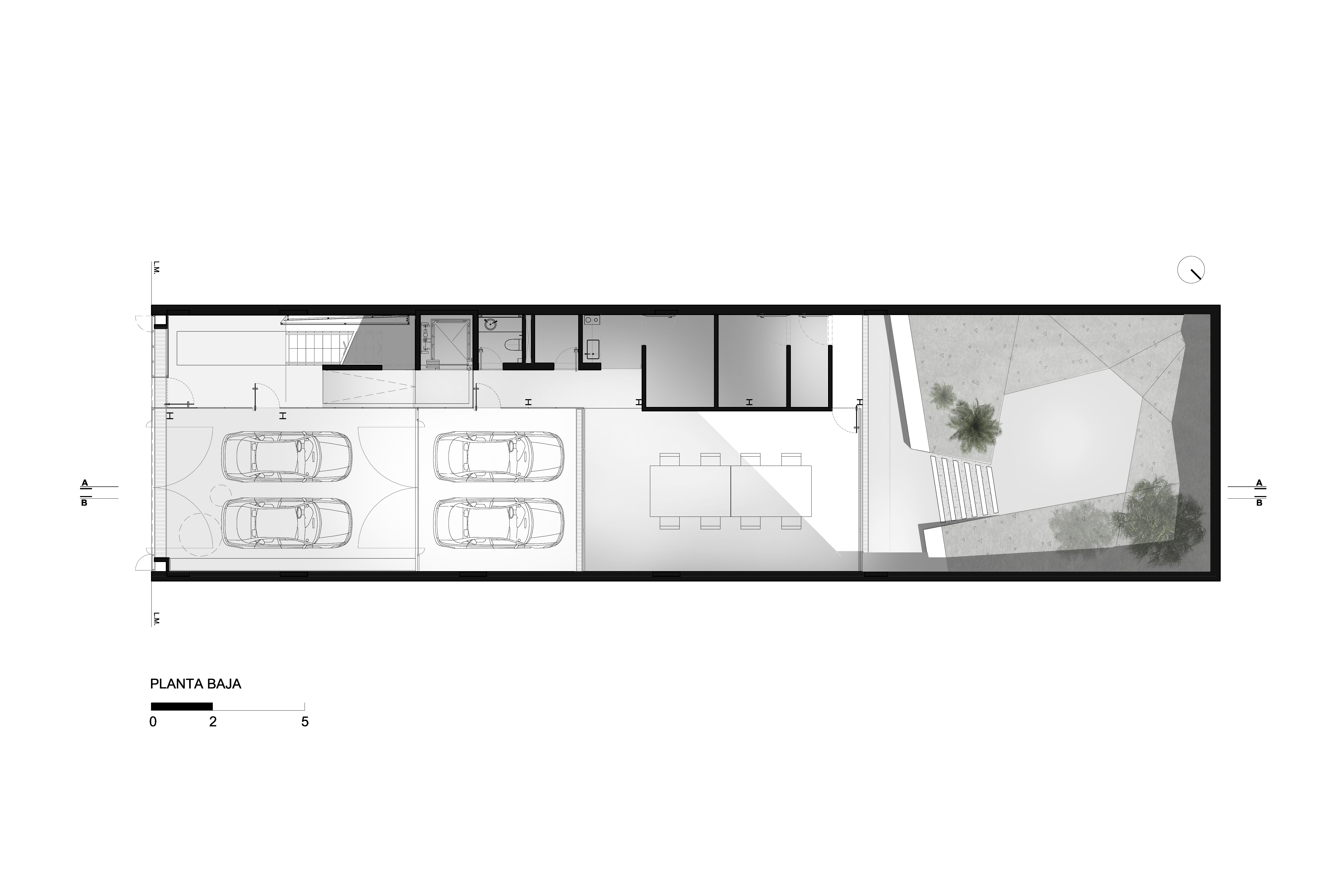 Se propone una serie de espacios de mayor altura que se vinculan entre sí en el corte del proyecto. A través de estos vacios, los espacios de trabajo comienzan a relacionarse visualmente entre si, a recibir luz desde diferentes orientaciones y tener vistas inesperadas: desde la recepción del primer piso puede verse el cielo hacia el norte, desde la terraza que abre al contrafrente puede verse también la vereda que está varios pisos mas abajo. Esta simple operación en el corte del edificio que recrea algunos experimentos artísticos -desde las intervenciones de Gordon Matta Clark a las ilustraciones de Tadonori Yokoo de las esquinas en Y de Tokio- incorpora dinamismo y sorpresa al espacio interior.