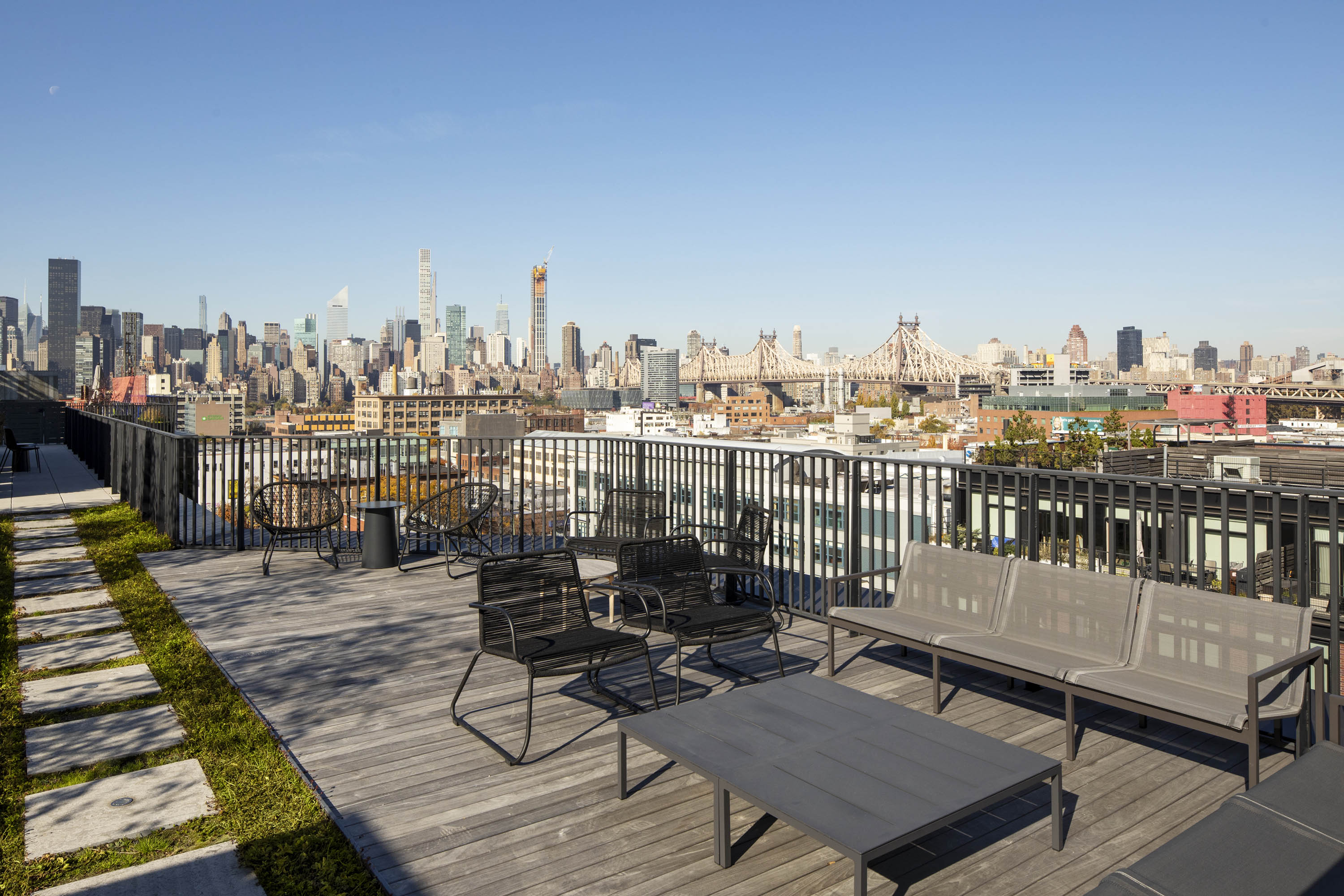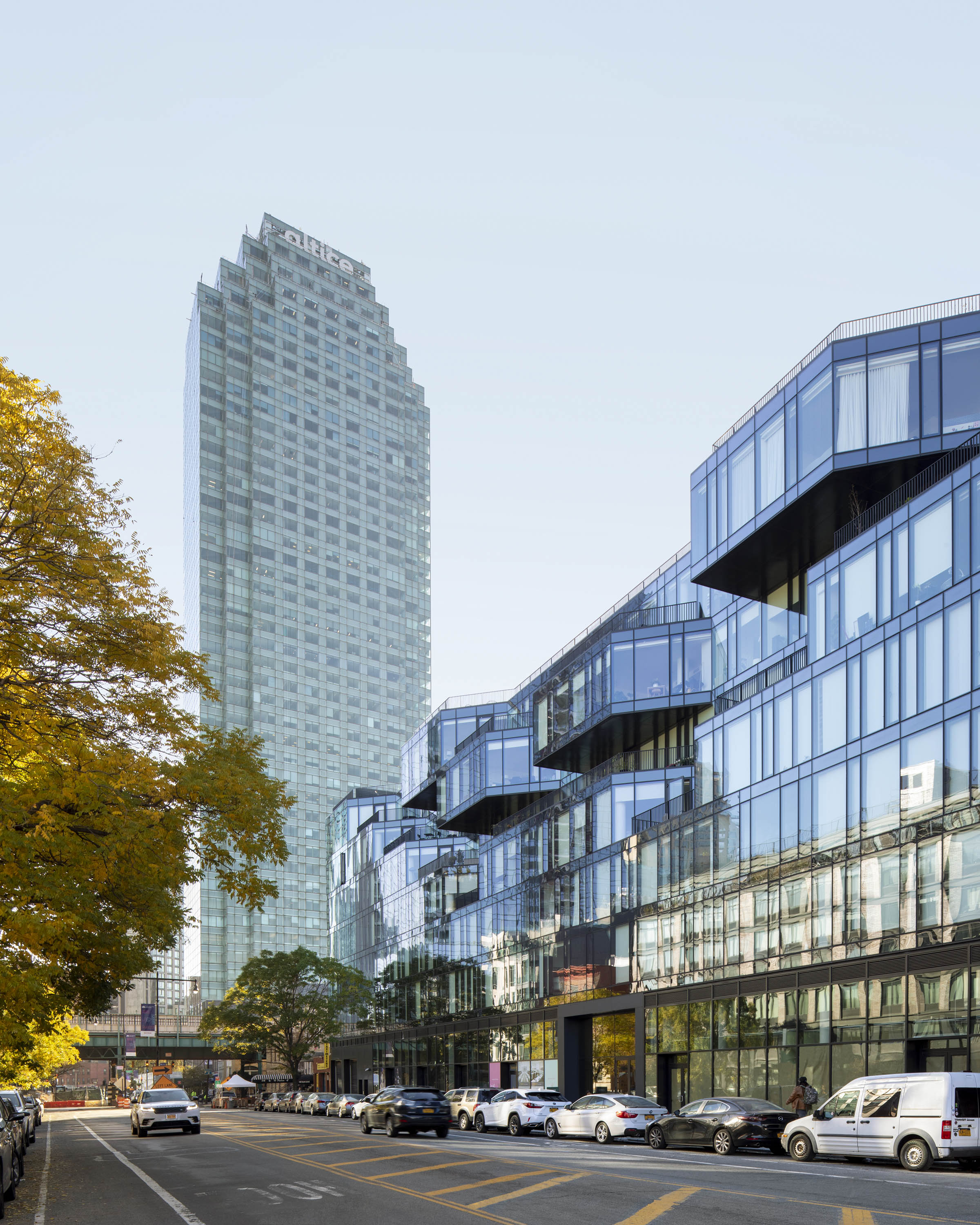 En una de estas avenidas -44th drive- se ubica este proyecto residencial en un terreno de ochenta metros de frente por treinta y tres de fondo. El volumen del edificio se diseñó buscando aprovechar creativamente el código de planeamiento de la ciudad para maximizar la cantidad de departamentos con terrazas y vistas hacia Manhattan.